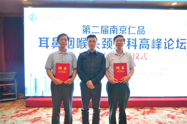 在学术论坛现场,仁品控股有限责任公司总裁陈国伟先生为蒋立新教授、洪锦科教授颁发了仁品高级医生聘书,并欢迎两位高级医生加入仁品名医库,希望在两位医生的带领下,南京仁品耳鼻喉专科医院成为一所百姓信赖、同行认可的品牌专科医院。