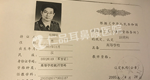 毕业于安徽医科大学,从事耳鼻喉临床工作近40年,曾任解放军九七医院任住院医师、徐州市耳鼻喉科委员会副主任委员,南京军区耳鼻喉科委员会副主任委员。曾参加南京军区重点人才深造2年、安徽医科大学附属医院进修2年。曾任江苏省医疗事故鉴定医生库成员。